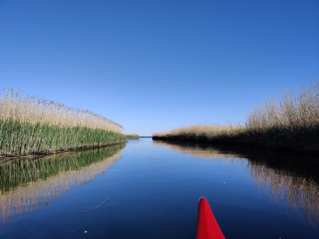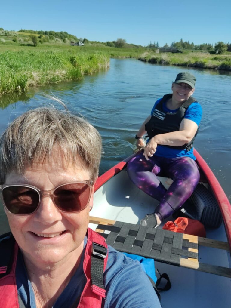 Maj måned 2025 kom den endelig i vandet. Vi havde bestemt os for at padle samme strækning på Lindenborg Å, som vi lagde ud med i november 2014. Det er 22 km med strømmen fra Håls Bro op til Limfjorden. Fra åmundingen skulle vi, ligesom på vores novembertur, padle langs kysten godt og vel en kilometer til en shelterplads. Her ville vi (og kanoen) blive hentet og kørt hjem, hvor vi ville overnatte i shelteren i min have. Vi havde nemlig for nylig benyttet pladsen ved Limfjorden, som altså er fredelig nok i november måned, men temmelig overrendt i sommerhalvåret.
